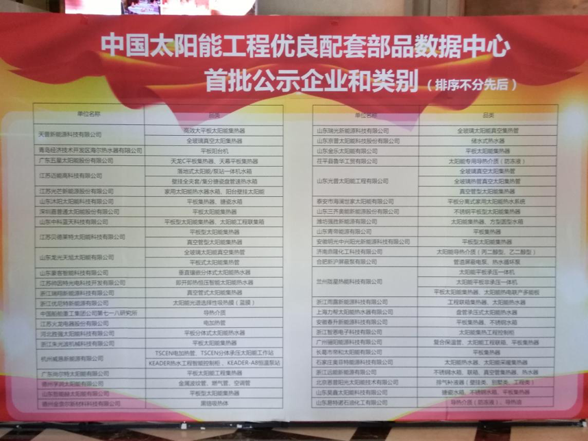 Recientemente, el primer lote de centros de datos de excelentes partes de apoyo de los proyectos de energía solar de China se incluyeron oficialmente en la lista de empresas, y se anunciaron en el lugar del "Foro y seminario de la Cumbre de Promoción de la Calidad del Tanque de Agua Esmaltada de 2018 Flat Plate Solar Collector, Enamel Water Tank" Mejoramiento de la calidad de la ingeniería de utilización térmica de la energía solar "celebrada del 6 al 7 de julio. Hay 47 empresas seleccionadas en esta selección. Los productos seleccionados cubren colectores planos, tanques de agua (tanques de agua de esmalte, tanques de agua de acero inoxidable), encabezados, gabinetes de control de ingeniería, tubos de vacío, soportes, bombas de agua, productos de caucho sellado, calentadores eléctricos auxiliares, cable calefactor, tubería especial de energía solar, material de aislamiento, accesorios de tubería de plomería, grifo termostático, medio de transferencia de calor, agente antiescalado de agua caliente (agente), grifo, válvula de control y otras partes de soporte relacionadas (productos).
