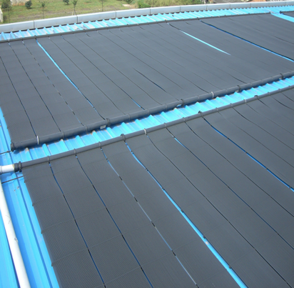 El principio de funcionamiento del sistema es que el agua de la piscina se presuriza a la placa colectora en el techo mediante una bomba de agua circulante, y el calor generado por la radiación solar de la placa colectora es eliminado por el flujo de agua, de modo que el agua se calienta, y luego el agua calentada se envía de vuelta a la piscina, de modo que el agua de la piscina se calienta a la temperatura diseñada repetidamente. La diferencia de temperatura entre la entrada y la salida de agua de este tipo de transferencia de calor es de solo 1 ~ 3 C.
