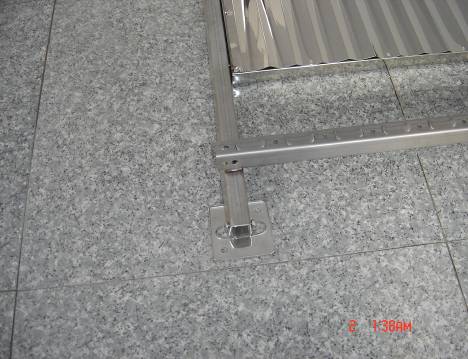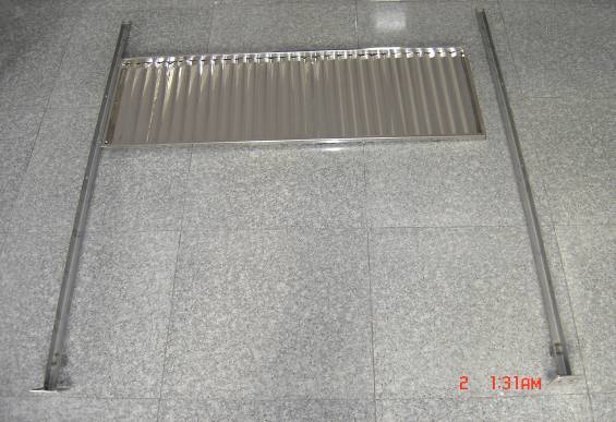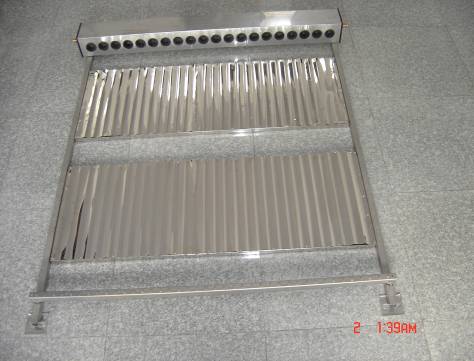 Después del montaje de los 2 paneles reflectores y 2 barras A, para voltear la unidad para poder fijar el colector de acero inoxidable en dos barras A (ver foto).