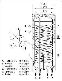 El tanque de agua a presión de acero inoxidable de doble núcleo y almacenamiento de energía es un nuevo tipo de tanque de agua de intercambio de calor desarrollado para el uso del sistema de calentamiento solar de agua montado en la pared del balcón para edificios residenciales de altura media y alta. Adopta una estructura de revestimiento de doble núcleo de chaqueta laminada, que conecta el emparedado de doble núcleo y el colector solar directamente y separa el agua doméstica del medio de circulación endotérmica por completo. El intercambio de calor entre el colector solar y el tanque de almacenamiento de agua caliente no requiere energía adicional. De acuerdo con la diferente densidad de temperatura del medio circulante, el termosifón actúa de forma natural, es decir, el colector absorbe el medio solar de alta temperatura y fluye hacia la circulación natural del medio circulante de baja temperatura en el tanque de agua de intercambio de calor de la camisa. Intercambia calor a través de la conducción de la pared interna del tanque de vida con camisa. El diagrama esquemático de la aplicación del tanque de agua presurizada de acero inoxidable de doble núcleo para almacenamiento de energía es el siguiente: